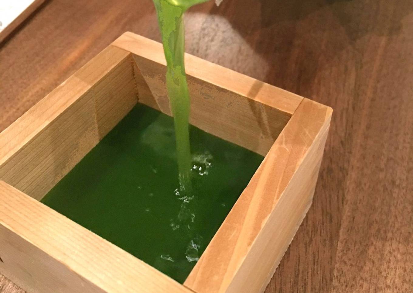 - Mezclar bien Sake frío y Sweet Matcha. Ya está!