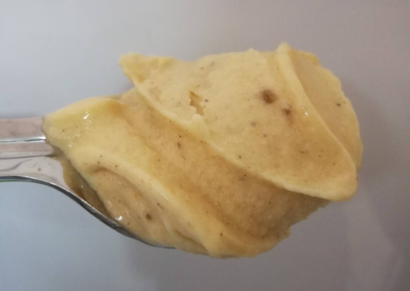 - Tritura hasta que veas que se va deshaciendo la fruta y convirtiéndose en un cremoso helado