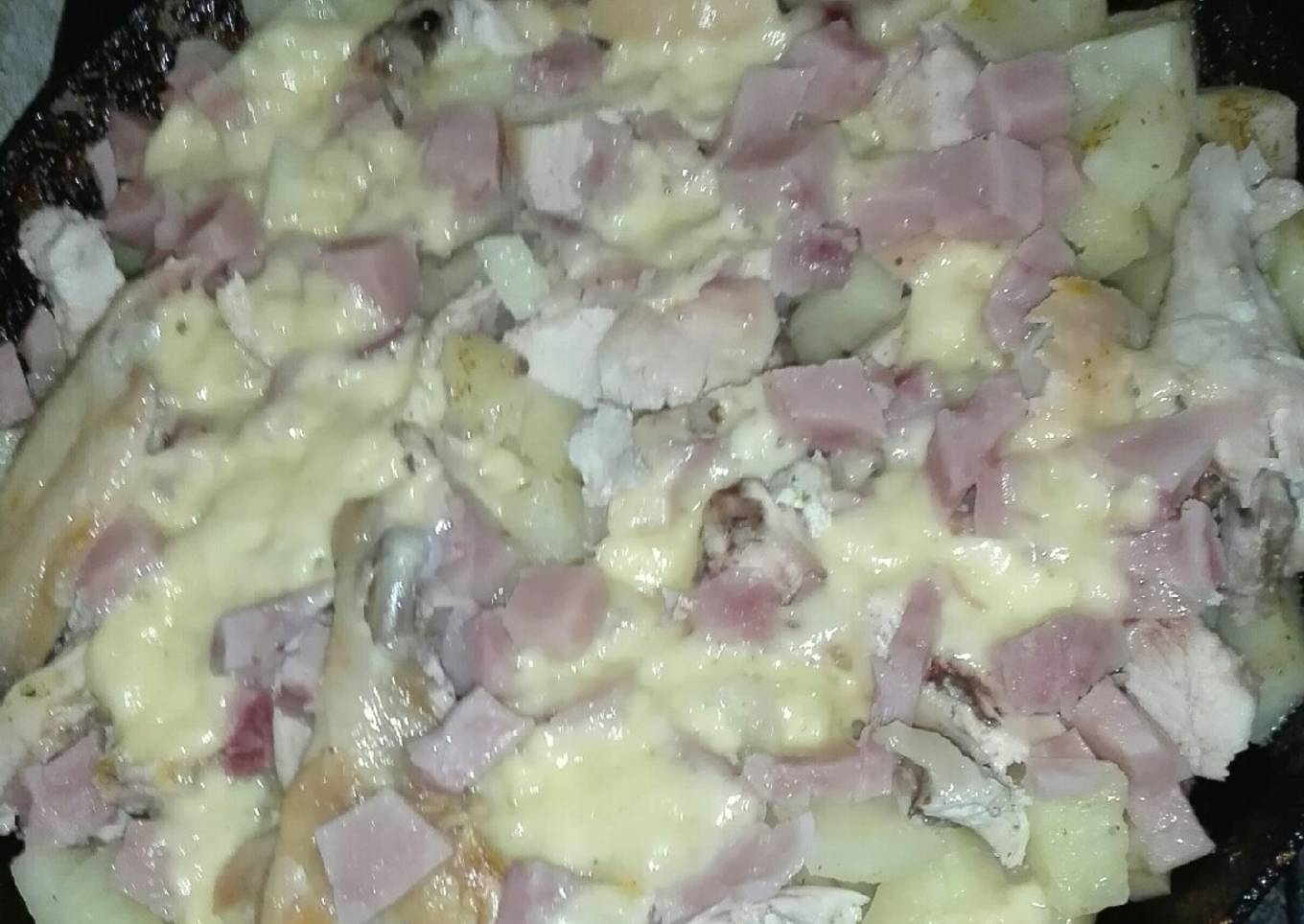 - Luego de unos minutos agregar jamón y queso en trocitos, tapar cinco minutos.