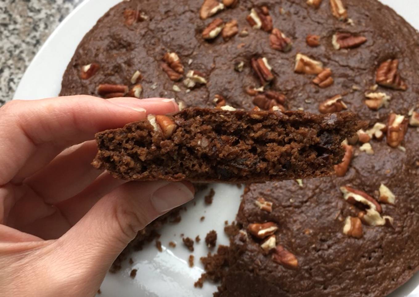 - En un molde engrasado con aceite en spray y enharinado, agregar la mezcla y agregar las nueces trituradas encima.