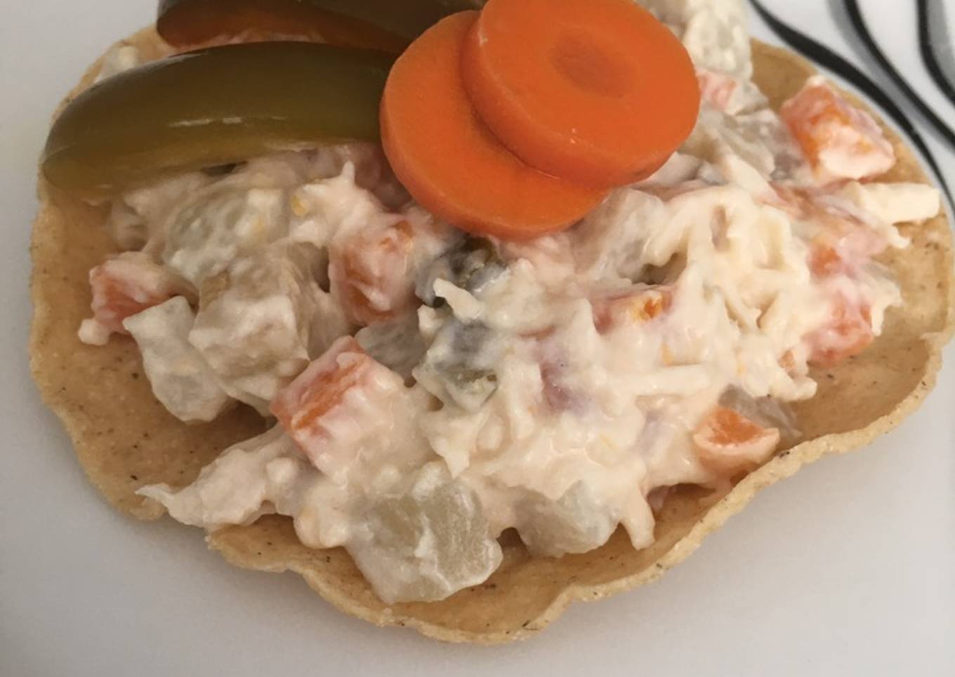 - Después agregamos la crema, la mayonesa, 4 cucharadas de jugo en vinagre de los chiles y sal al gusto. Revolvemos y listo. Podemos acompañar con tostadas (horneadas que tienen menos grasa) o galletas saladas😊 Provechito!